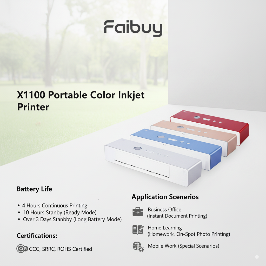 Battery capacity is 1.6 times that of Epson’s and 1.3 times that of HP’s, allowing more pages to be printed on a single charge, and optional configuration meets long-term use needs. |